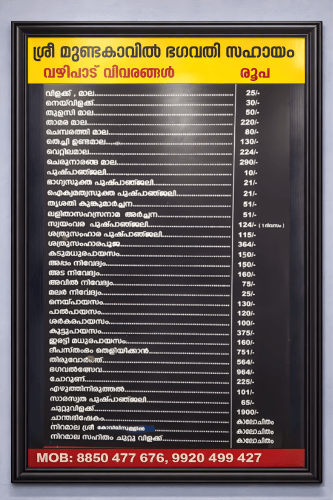 ക്ഷേത്രവുമായി ബന്ധപ്പെട്ട വിവരങ്ങൾക്കും വഴിപാട് ബുക്കിംഗിനുമായി ഞങ്ങളുമായി ബന്ധപ്പെടാം.
